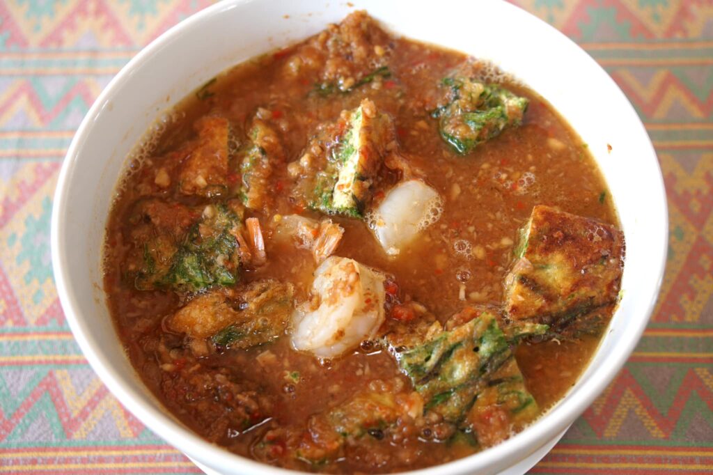 Sweet and sour soup with deep fried Thai Acacia and shrimp