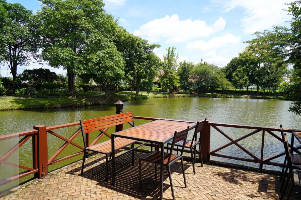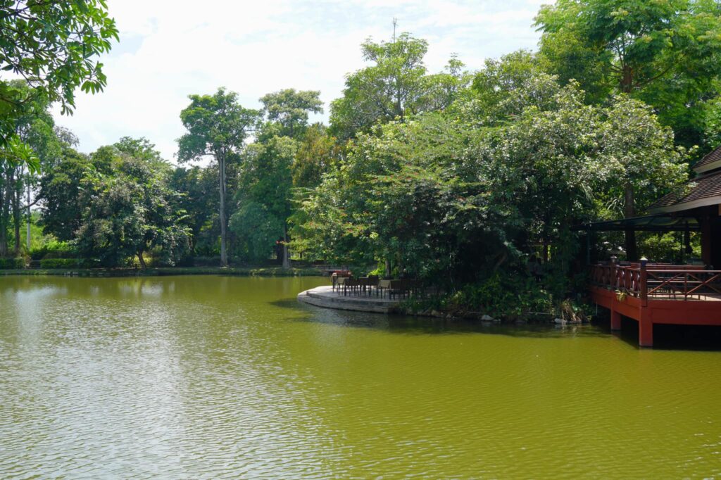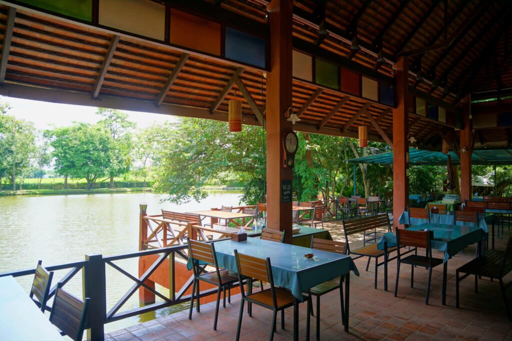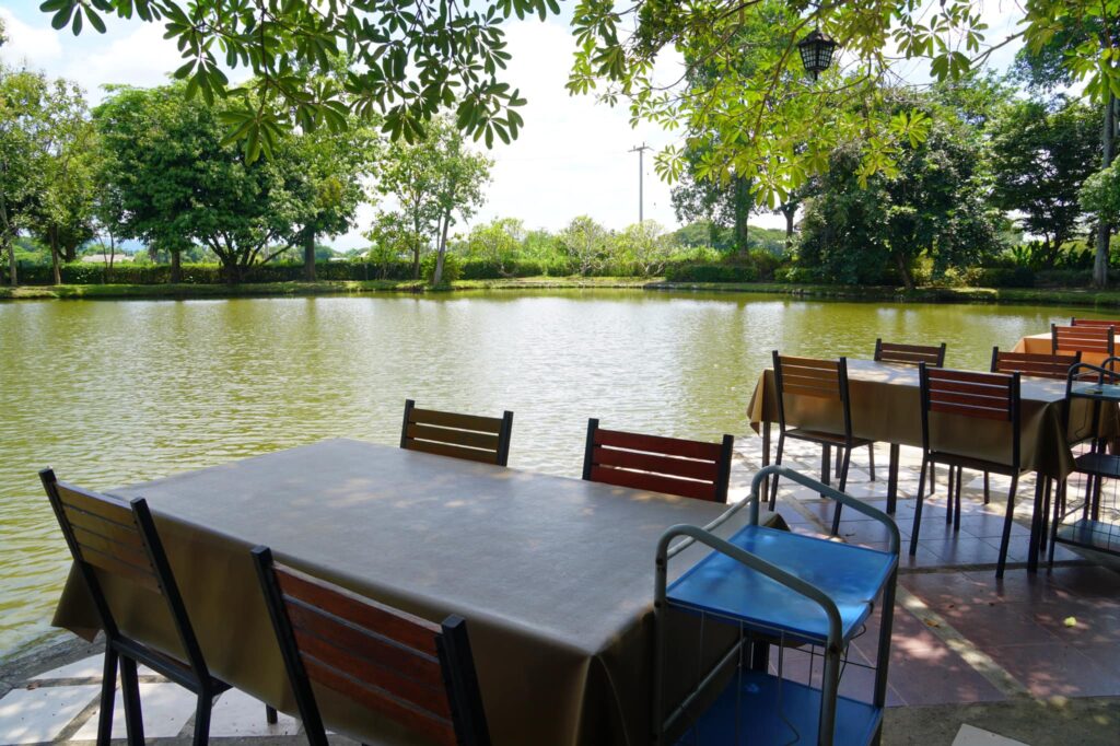ทางร้านได้รื้อเล้าหมูออก แล้วขุดบ่อน้ำขนาดใหญ่ตรงกลาง จากนั้นนำลูกปลาตะเพียนมาปล่อยเพื่อให้เติบโตตามธรรมชาติโดยมีปลาดุกรัสเซียตัวโตคอยเป็นนักล่าเพื่อรักษาสมดุลของระบบนิเวศน์ ใครที่พาลูกๆหลานๆมาสามารถขอซื้ออาหารปลากับพนักงานเเล้วมาโปรยเลี้ยงปลาที่ริมน้ำ