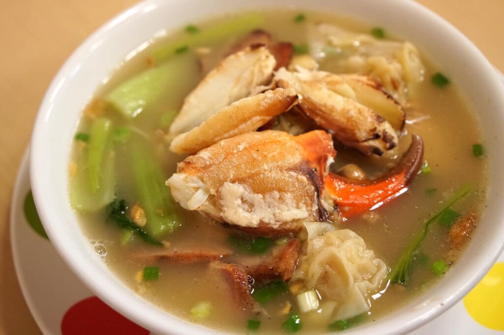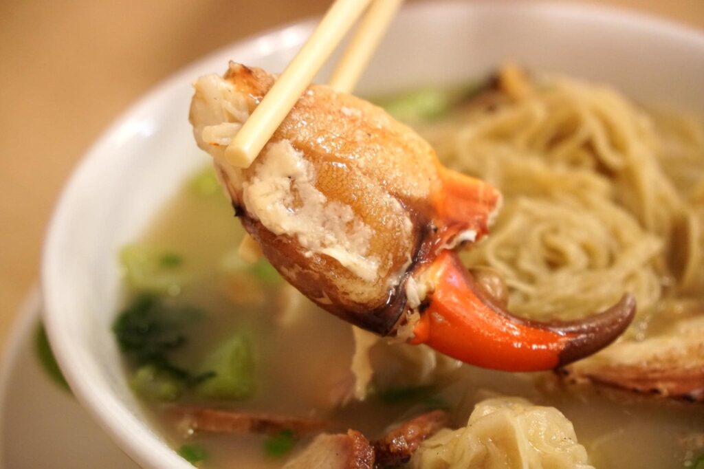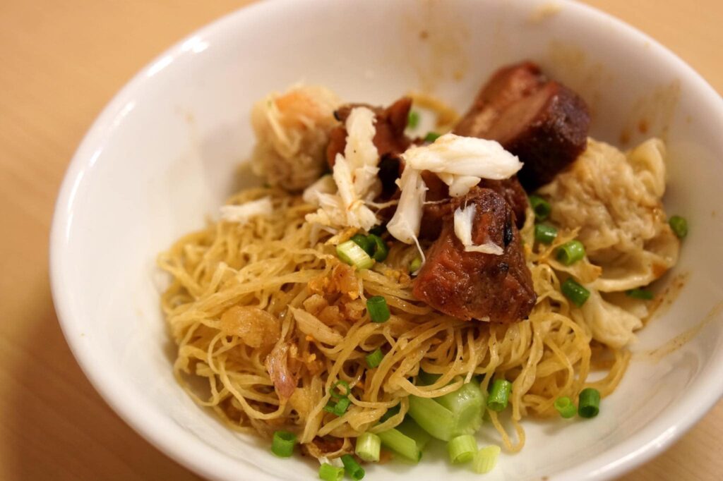 Egg noodles with shrimp wonton, crispy pork and crab meat