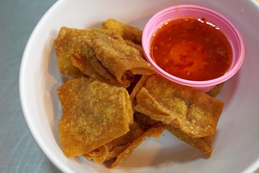เกี๊ยวทอดมาสุกกำลังดี กรอบ ไม่อมน้ำมัน สีเหลืองสวย เนื้อหมูข้างในหวาน อร่อยใช้ได้เลย (12/20)