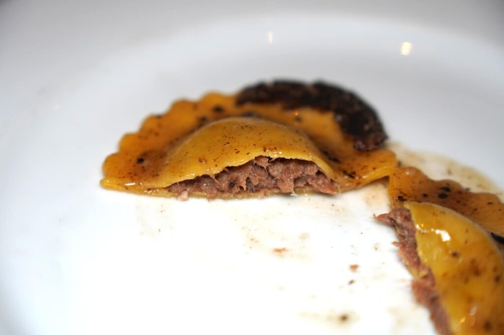 ไส้เนื้อวัวด้านผ่านตุ๋นมาเป็นอย่างดีตัดกันกับความกรึบของราวิโอลีด้านนอกได้อย่างพอเหมาะ (15/20)