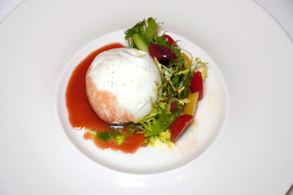 เริ่มต้นกันที่เมนูแรกในหมวดหมู่ Antipasti e Insalate อย่างชีสบูราต้าสด ๆ ผิวด้านนอกนุ่ม เนื้อด้านในมีความครีมมี่หอมมัน เสิร์ฟมากับมะเขือเทศและน้ำมะเขือเทศให้รสเปรี้ยวอุมามิ ข้างกันคือสลัดผักต่าง ๆ คลุกเคล้ามากับบัลซามิคที่ผ่านการรีดัคชั่นจนงวดเข้มข้น ทุกองค์ประกอบถูกเบรคไม่ให้มีกลิ่นและรสชาติโดดเด่นไปกว่ากันด้วยซอสเบซิลเพสโต้ ถือเป็นจานที่ช่วยเรียกน้ำย่อยและเรียกความสดชื่นได้เป็นอย่างดีเลยทีเดียว (13/20