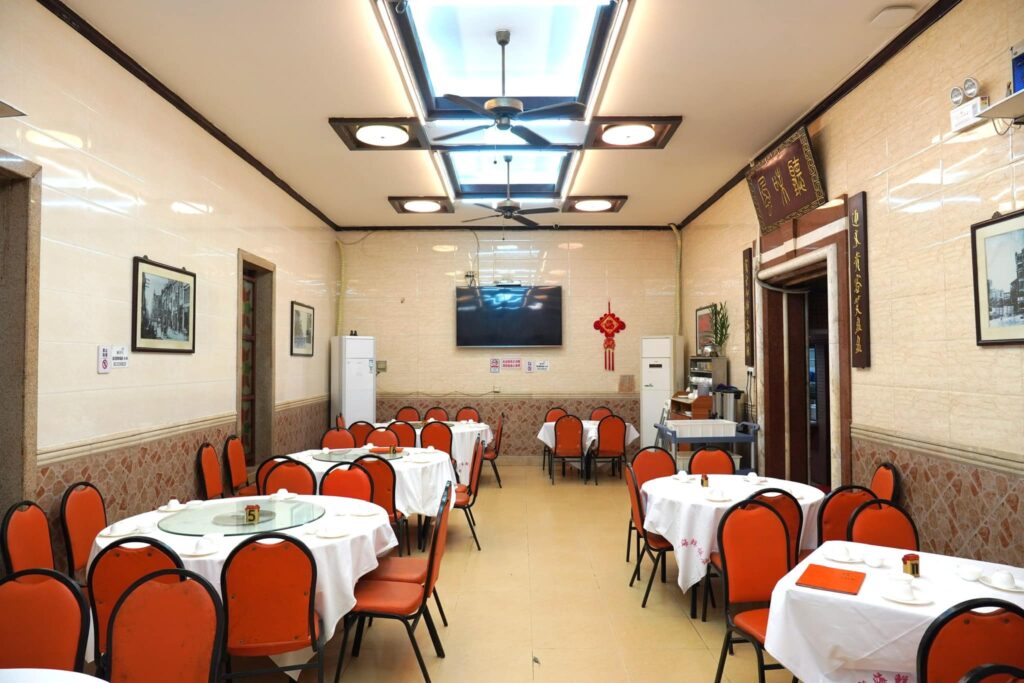 Xinji (信记海鲜饭店) เป็นร้านอาหารทะเลระดับตำนานของนครกว่างโจวโดยมีทำเลที่ตั้งอยู่ในตรอกเล็ก ๆ บนถนน Changdida ไม่ไกลกันกับสะพาน Jiefang Bridge อันโด่งดัง ลูกค้าสามารถเดินทางมายังปากซอยด้วยรถแท็กซี่หรือเดินทางมาด้วยรถไฟใต้ดินลงสถานี Yide Road Exit A แล้วเดินต่อบนทางเท้าเรียบแม่น้ำ Zhujiang มายังร้าน ด้วยอายุอานามเกินกว่า 30 ปี ทำให้ภายในร้านตกแต่งออกมาในสไตล์ Lingnan คลาสสิค ฝั่งหนึ่งโดดเด่นด้วยตู้สัตว์น้ำเป็น ๆ จำนวนมากว่ายไปมาไม่ว่าจะเป็นกุ้ง หอย ปู และปลานานาชนิด ห้องรับประทานอาหารหลักมีเพดานร้านยกสูงและมีไฟส่องสว่างเหมาะเป็นอย่างยิ่งสำหรับลูกค้าที่มากันเองเป็นครอบครัวใหญ่ บนผนังตกแต่งด้วยรูปถ่ายย้อนยุคของประเทศจีนในอดีต ด้วยเหตุที่ทางร้านไม่เปิดรับจองคิวเราจึงแนะนำอย่างมากให้เดินทางมาถึงช่วงที่ร้านเปิดพอดีเพื่อหลีกเลี่ยงการรอคิว ส่วนใครที่มาเป็นกลุ่มหรือมีงานจัดเลี้ยงและต้องการความเป็นส่วนตัวสามารถติดต่อกับทางร้านล่วงหน้าทางโทรศัพท์ด้วยภาษาจีนเพื่อขอจองห้องส่วนตัวได้เป็นพิเศษเช่นกัน