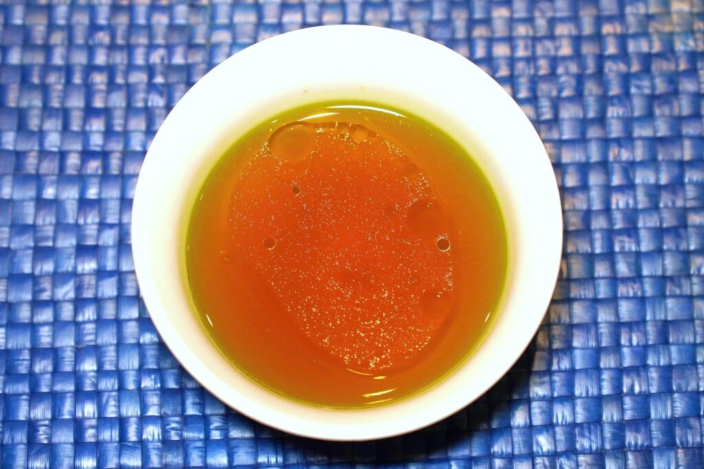 จากนั้นตัดรสชาติด้วยซุปใสที่เชฟใส่ใบชะมวงลงไปด้วยให้รสเปรี้ยวเบา ๆ