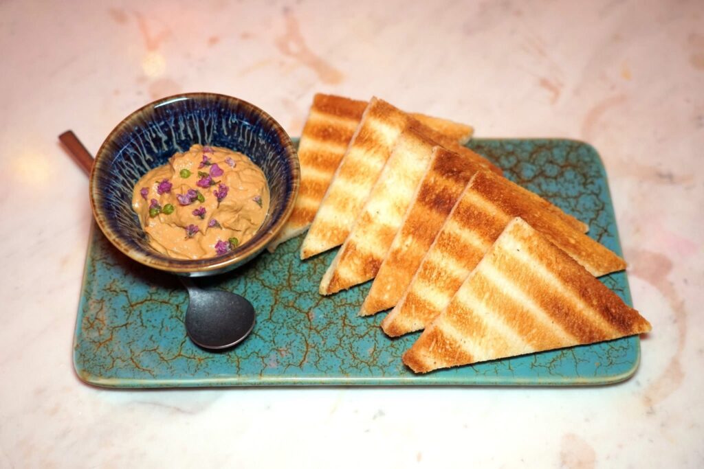 Mouse of anko fish liver served with toasted white bread