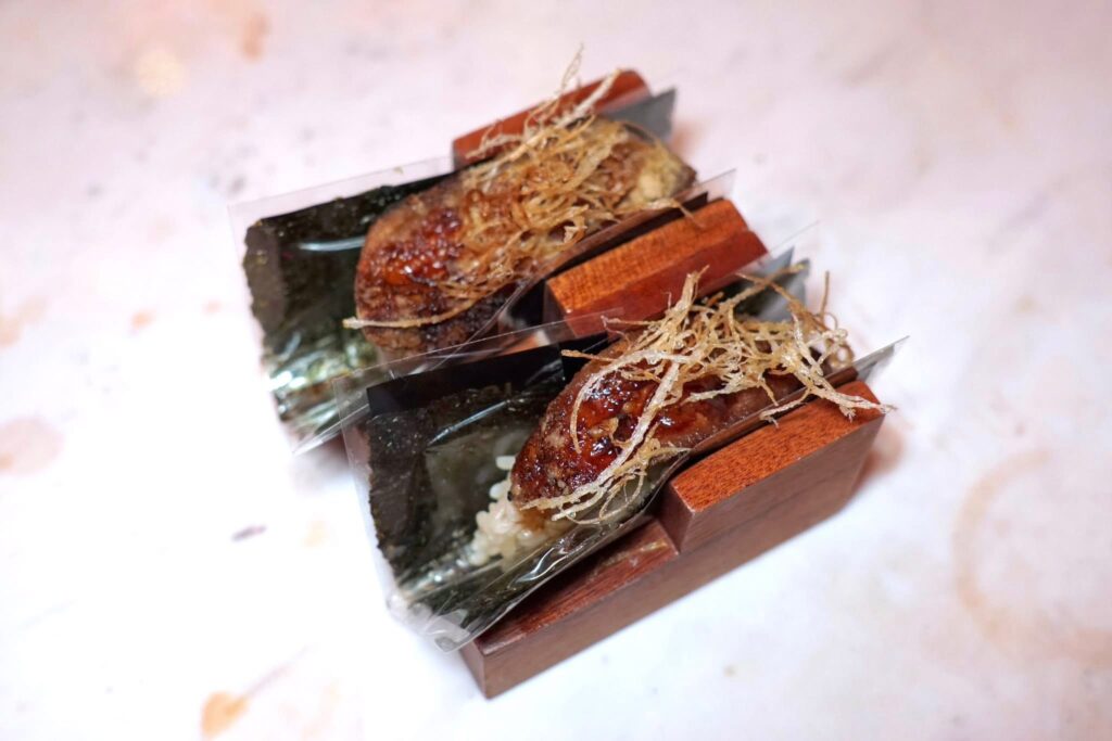 Hand Roll ที่จับคู่กับฟัวกราส์จี่บนกระทะจนผิวกรอบ ตัดความมันด้วยซอสเทริยากิเข้มข้น