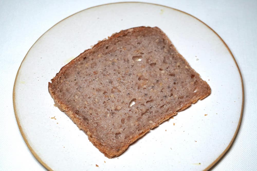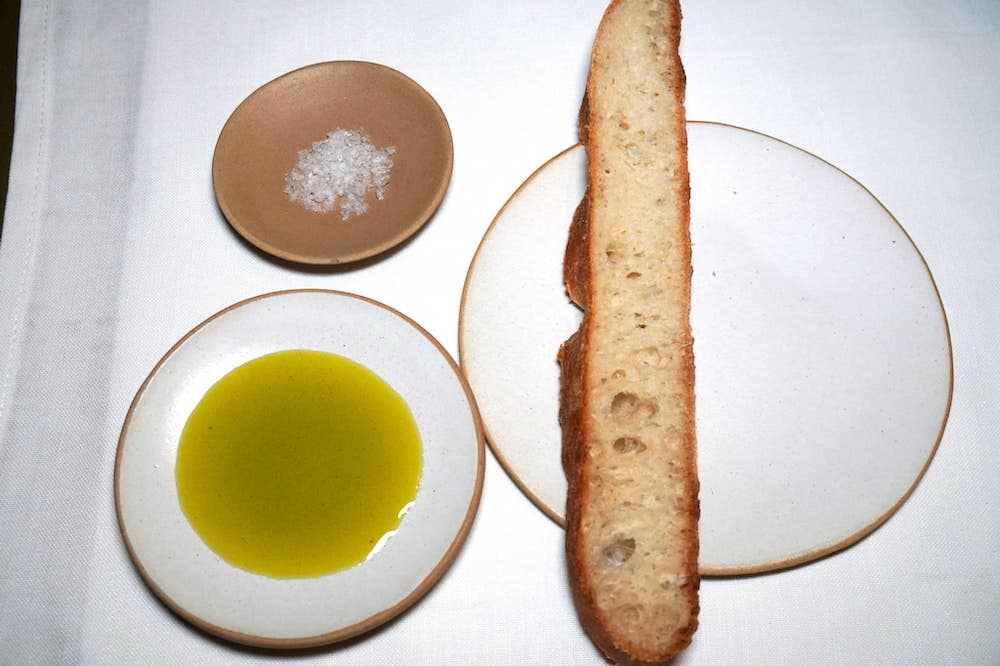 คั่นด้วยการนำเสิร์ฟขนมปังทำมาจาก Buckwheat ซึ่งจะมีความนุ่มหนึบมากกว่า Sourdough ทั่วไป