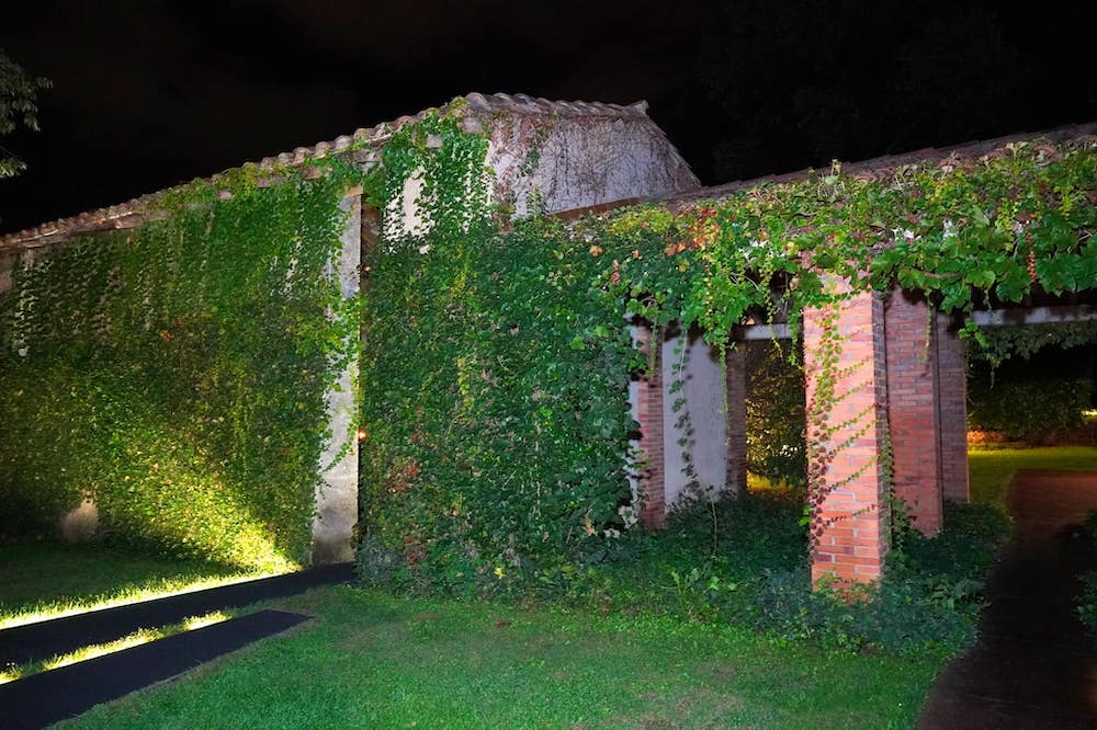 เมื่อเดินเข้าไปสุดห้องอาหารผ่านประตูกระจกออกไปยังสวนให้หันกลับมามองตัวอาคารจะพบกับ Facade ที่เต็มไปด้วยต้น Buckwheat ซึ่งเป็นมุม Iconic ของห้องอาหารแห่งนี้