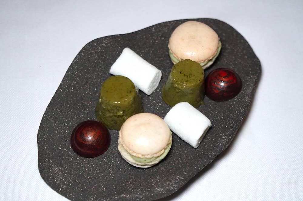 ปิดท้ายมื้ออาหารด้วยขนมหลายทำมาจากผัก สมุนไพร และดอกไม้ท้องถิ่นที่ขึ้นในดินภูเขาไฟแถบ La Garrotxa ทำหน้าที่คล้าย Petits Fours ประกอบไปด้วย Chocolate with rose, Celery Panna Cotta, Basil Marshmallow และ Matafaluga (Anise Macaron) (16/20)