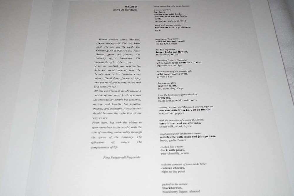 เปิดออกมาจะพบกับข้อความที่เล่าถึงแนวคิดของเชฟ Fina Puigdevall ได้เป็นอย่างดี