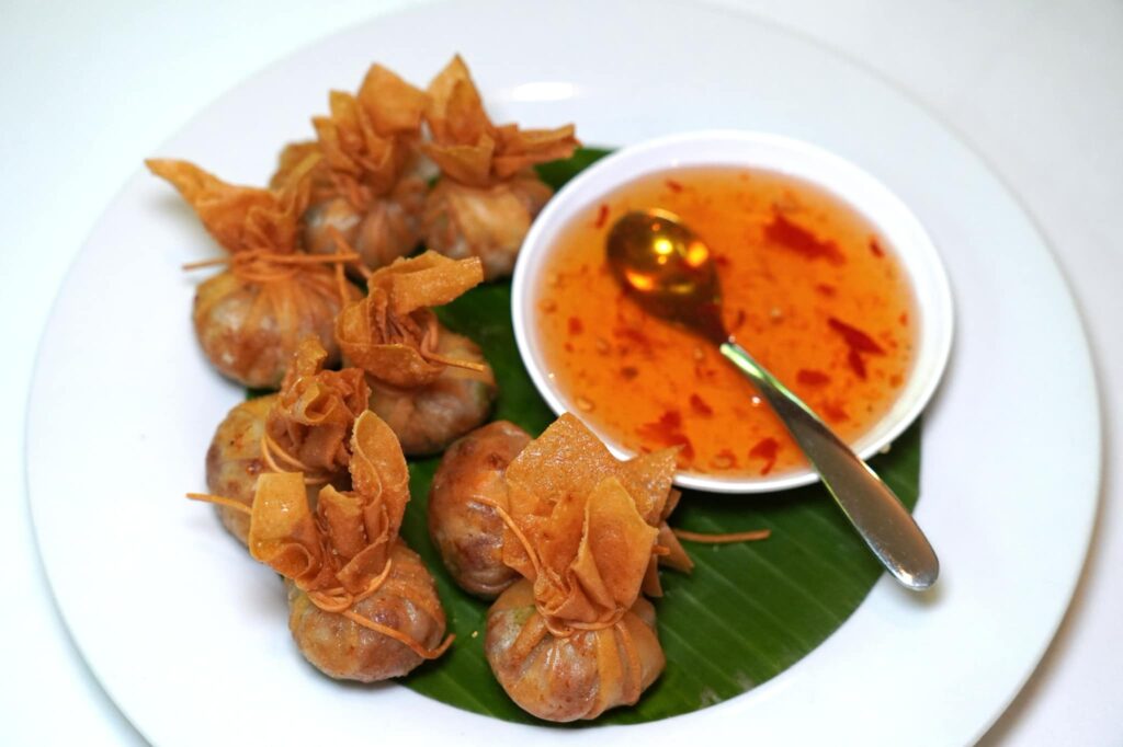 ถุงทองขนาดพอดีคำห่อไส้หมูมาสวยงาม ทอดจนเหลืองกรอบ จะรับประทานเปล่า ๆ หรือหยดน้ำจิ้มลงไปด้วยก็อร่อย ไม่นานก็หมด (12/20)