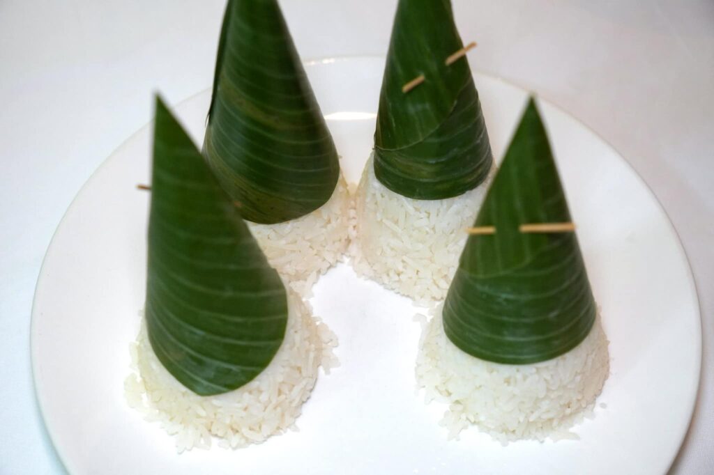 สำหรับข้าวสวยที่นี่คิดราคาต่อหัว เติมได้เรื่อย ๆ ตลอดมื้อ ทางร้านห่อมาด้วยใบตองซึ่งนอกจากจะเพิ่มความสวยงามแล้วยังสามารถกักความร้อนของจ้าวเอาไว้ได้นานอีกด้วย