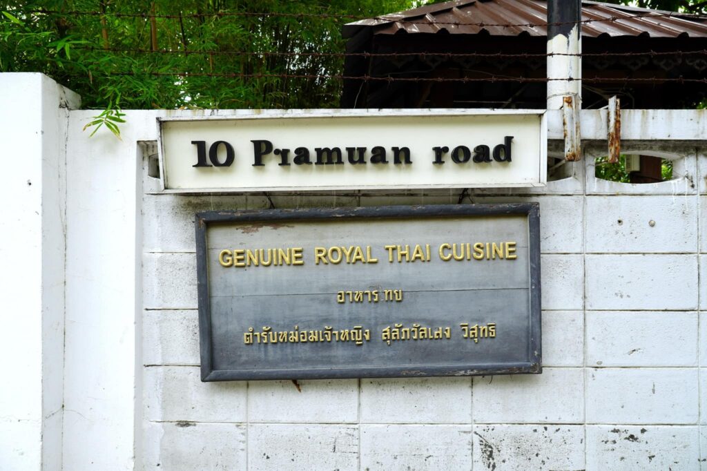 อาหารที่นี่จัดเตรียมออกมาในรูปแบบอาหารไทยชาววังเนื่องจากแม่ครัวของร้านได้รับการสืบทอดสูตรมาจากท่านหญิงหรือหม่อมเจ้าหญิง สุลัภวัลเลง วิสุทธิ (ซึ่งเป็นพระขนิษฐาในสมเด็จพระนางเจ้ารำไพพรรณี พระบรมราชินีในล้นเกล้ารัชกาลที่ ๗) โดยการเข้าไปฝึกอยู่ในห้องเครื่องของวังศุโขทัยตั้งแต่มีอายุได้ 17 ปีจนสามารถซึมซับทั้งรสชาติและขั้นตอนการปรุงอันละเอียดซับซ้อนมาได้ทั้งหมด