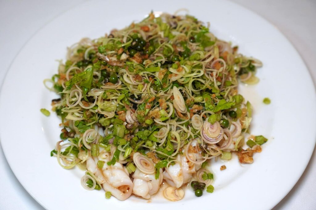 เป็นครั้งแรกที่เราได้ชิมเมนูปลาหมึกผัดขึ้นฉ่ายของร้านนี้ และก็ต้องแปลกใจเพราะเนื้อหมึกผัดมาสุกพอดี ไม่หดแม้แต่น้อย ผัดกับเครื่องสมุนไพรหลายชนิดใส่มาจนพูนจาน เคี้ยวไปจะได้ความกรอบของตะไคร้และพริกไทยดำตัดกันกับความเด้งและหนึบของเนื้อหมึก สุดยอดมาก ๆ (13/20)